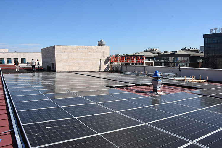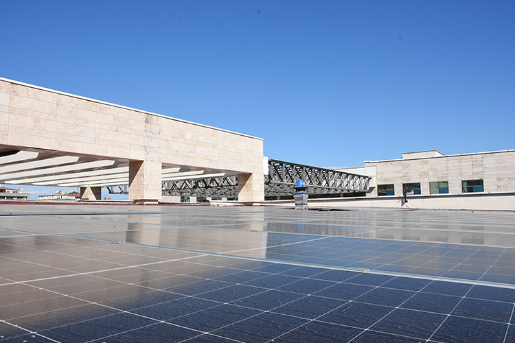 Samsun Adalet Sarayı'nda Kamu ve Belediye Yenilenebilir Enerji Projesi (KAYEP) kapsamında hayata geçirilen GES Projesi kapsamında adliye binasının çatısında 2 bin 500 metrekarelik alana 652 güneş paneli konuldu.